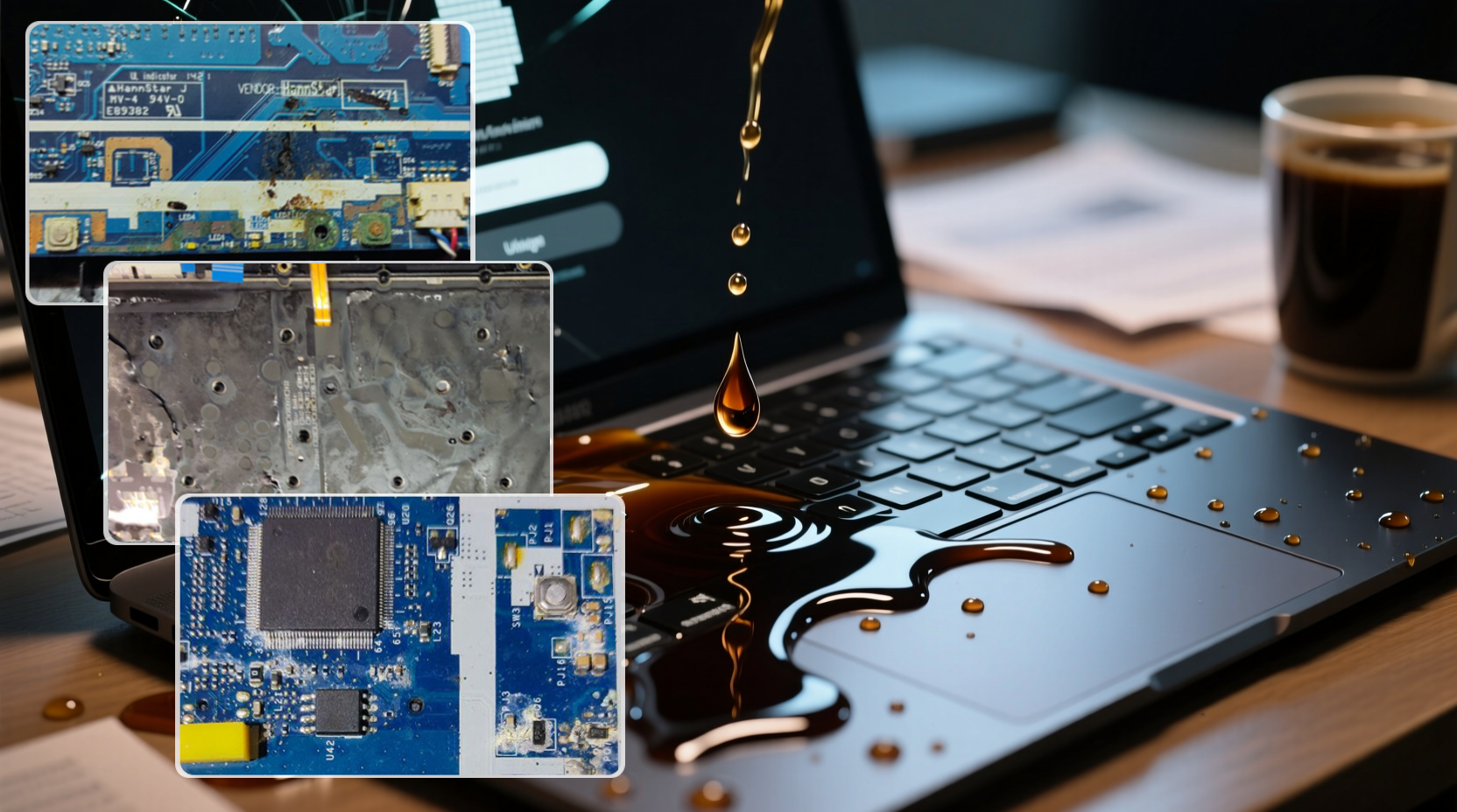 Разлитая на ноутбук жидкость (вода, чай, кофе, газировка) — это серьезная проблема, которая может привести к короткому замыканию и выходу техники из строя. Однако если действовать быстро и правильно, есть шанс спасти устройство.